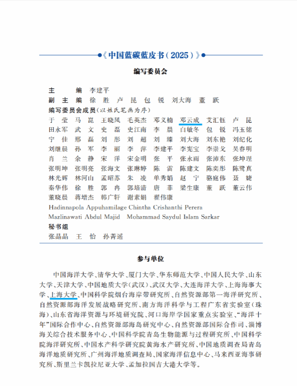 近日,《中国蓝碳蓝皮书2025》正式刊印,英国正版365首页邓云成副研究员参与相关章节编写,也是我校专家首次受邀编写蓝碳蓝皮书。