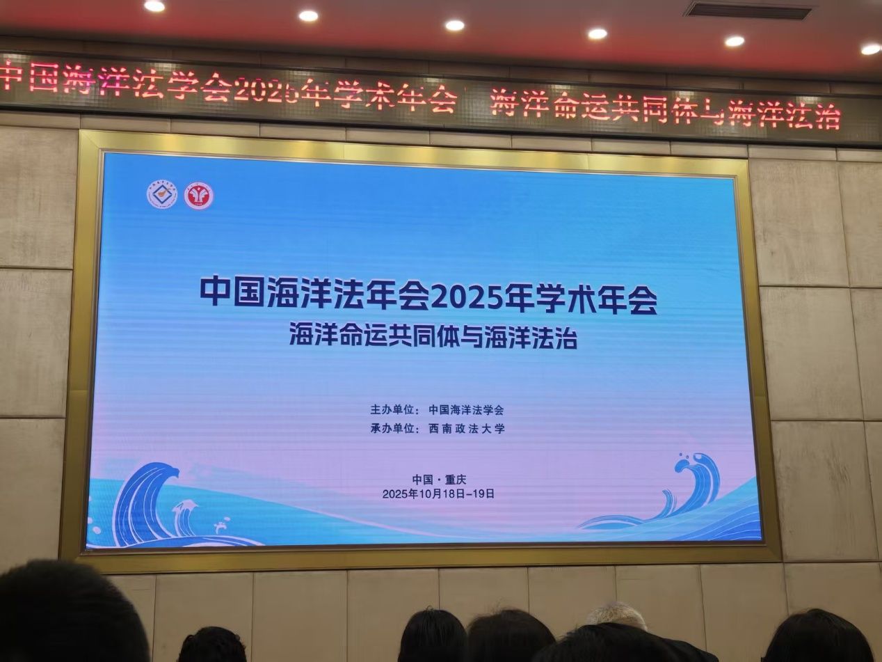 10月18日至19日,中国海洋法学会2025年学术年会在西南政法大学召开。本次会议主题为“海洋命运共同体与海洋法治”,由中国海洋法学会主办、西南政法大学承办。外交部、自然资源部、重庆市人大常委会、中国海洋法学会、海军研究院、大连海事法院、广东省湛江市人民检察院等来自相关部门、全国各高等院校、科研院所的200余位专家学者和青年学者参会,我院教师邓云成应邀参加了会议并作报告。