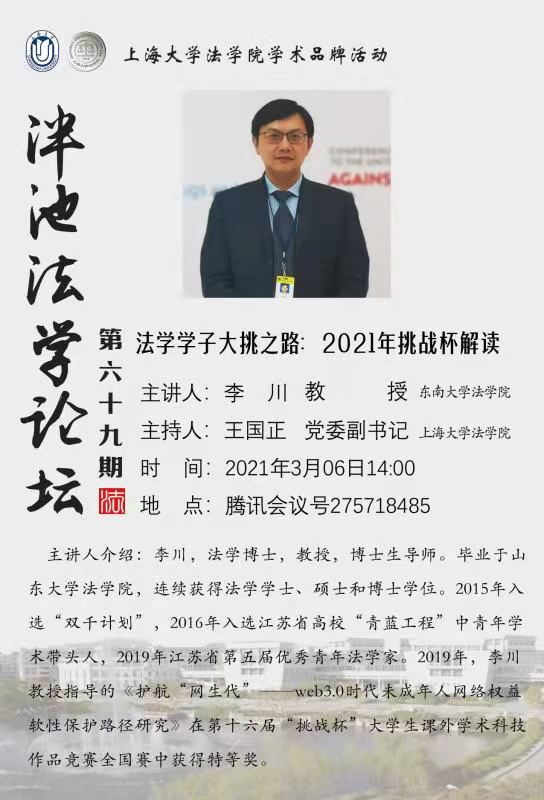 泮池法学论坛第70期预告:法学学子大挑之路:2021挑战杯解读