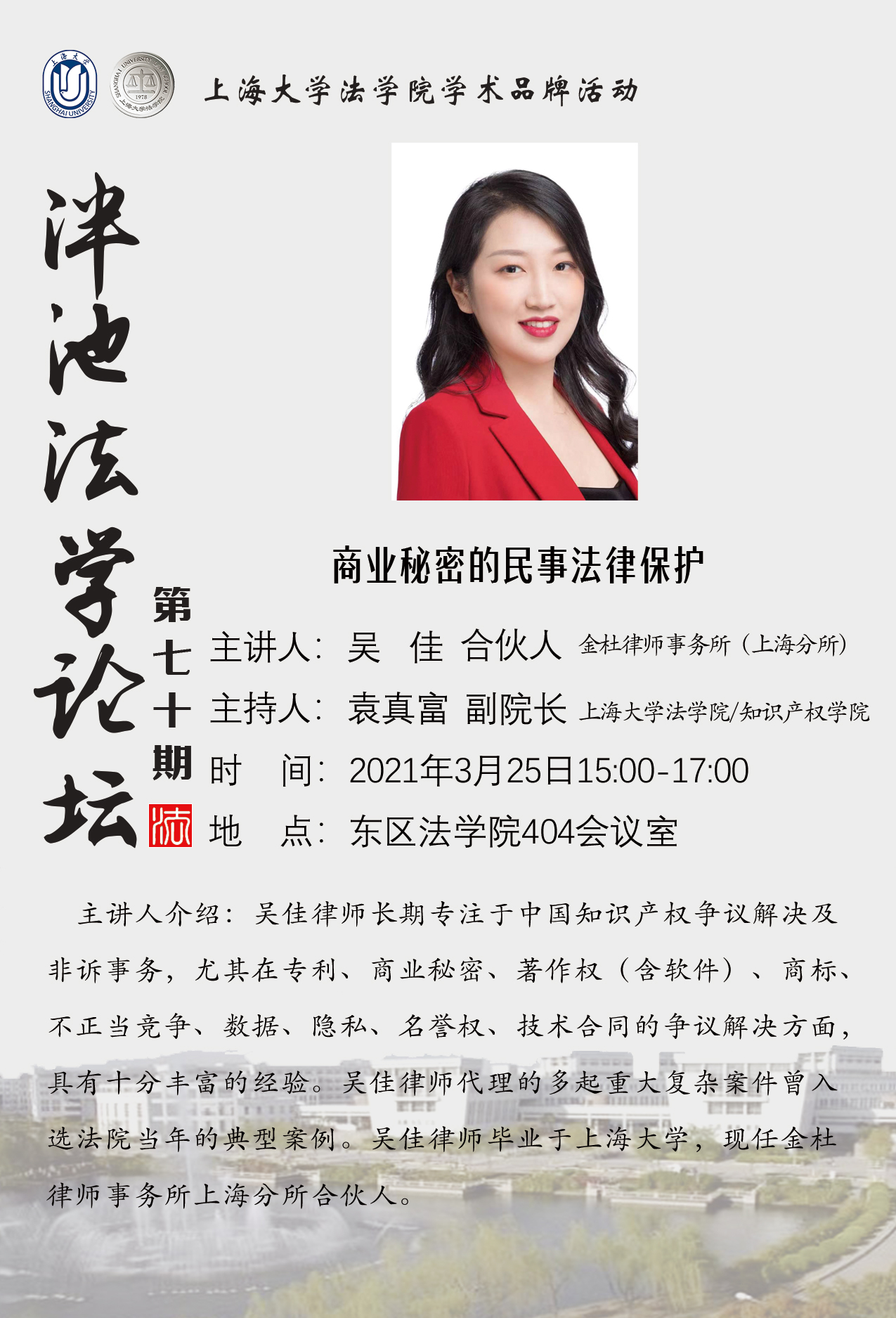 泮池法学论坛第71期预告:商业秘密的民事法律保护