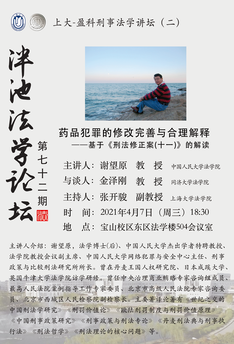 泮池法学论坛第72期预告:药品犯罪的修改完善与合理解释——基于《刑法修正案(十一)》的解读