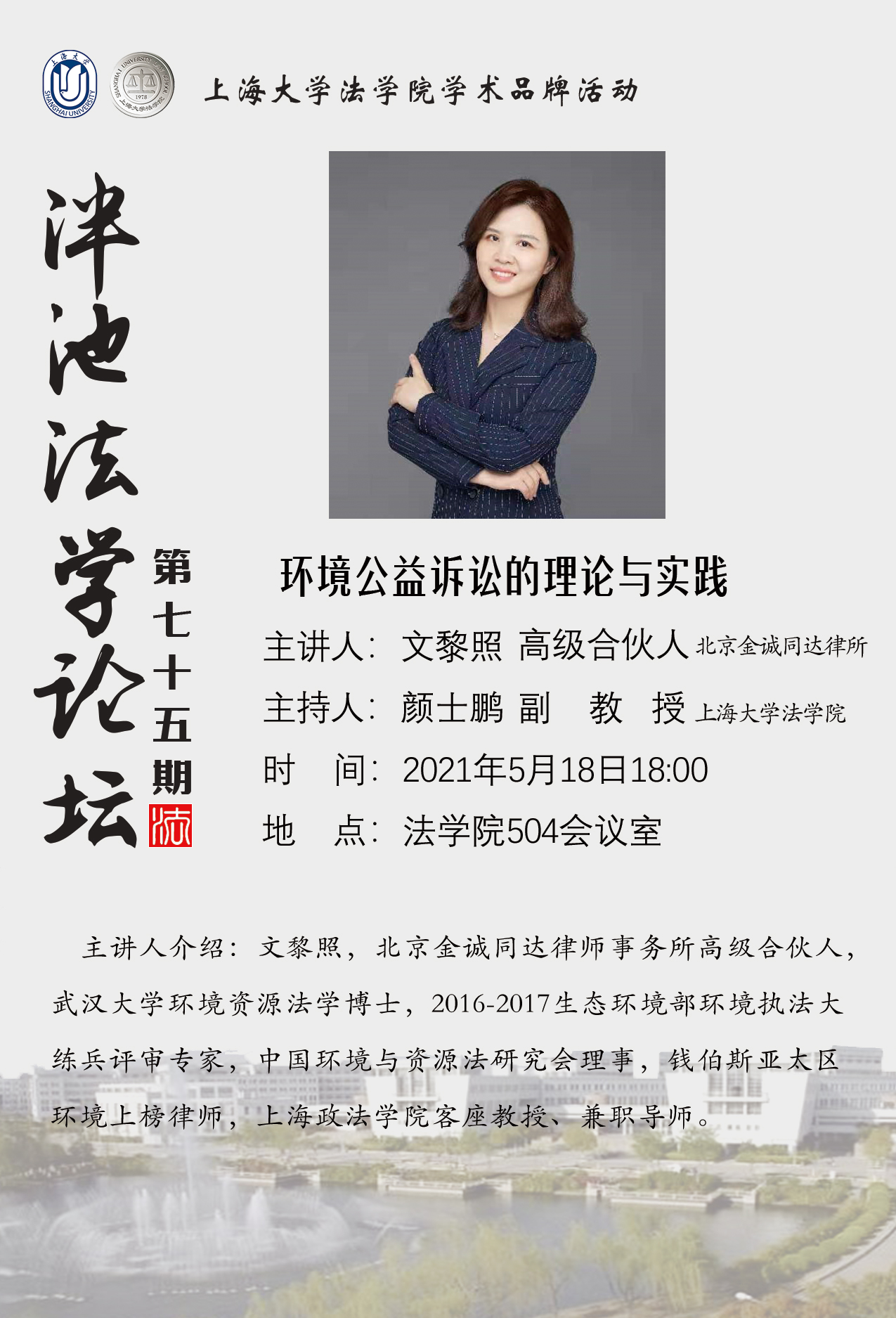 泮池法学论坛第75期预告:环境公益诉讼的理论与实践