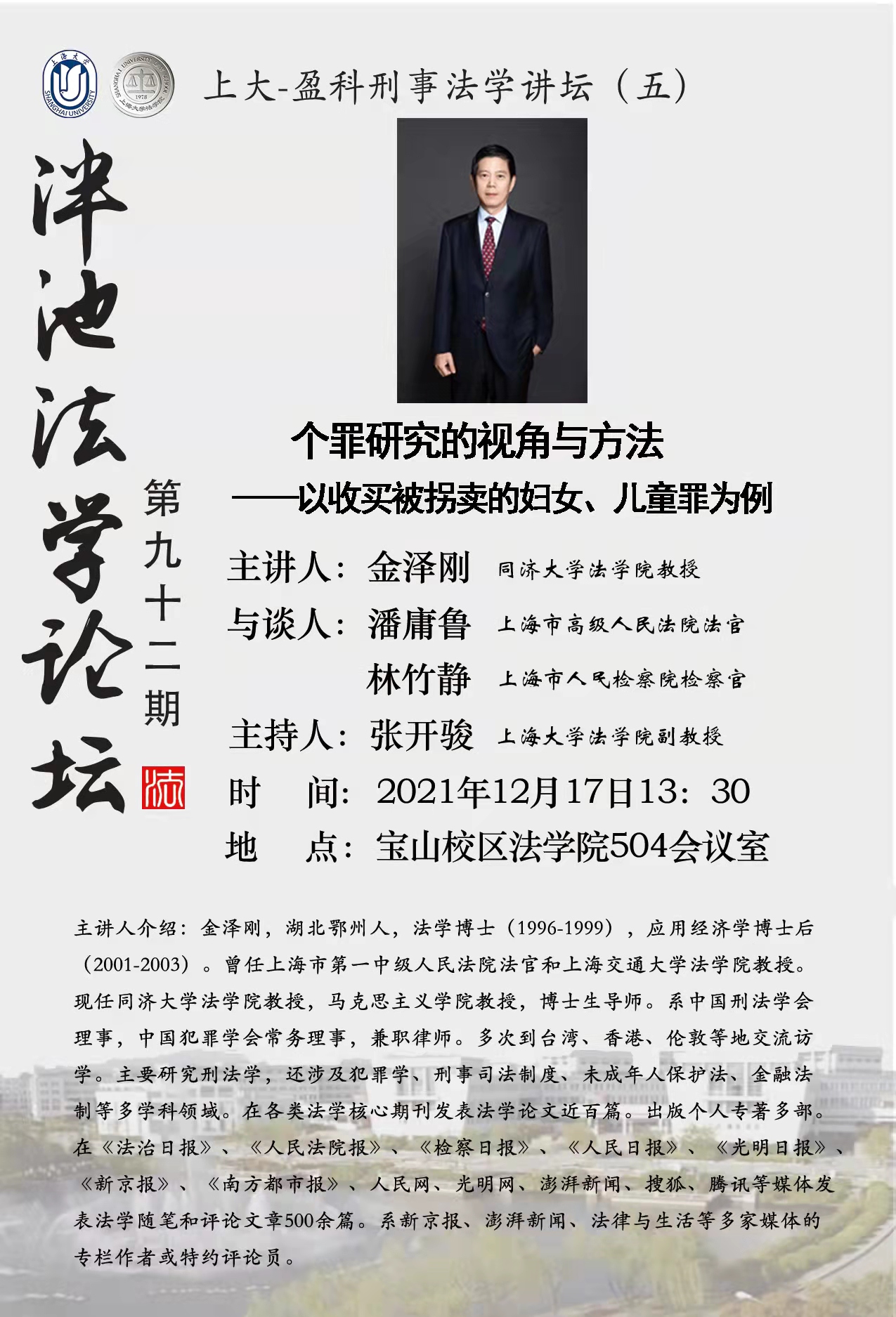泮池法学论坛第92期预告:个罪研究的视角与方法—以收买被拐卖的妇女、儿童罪为例