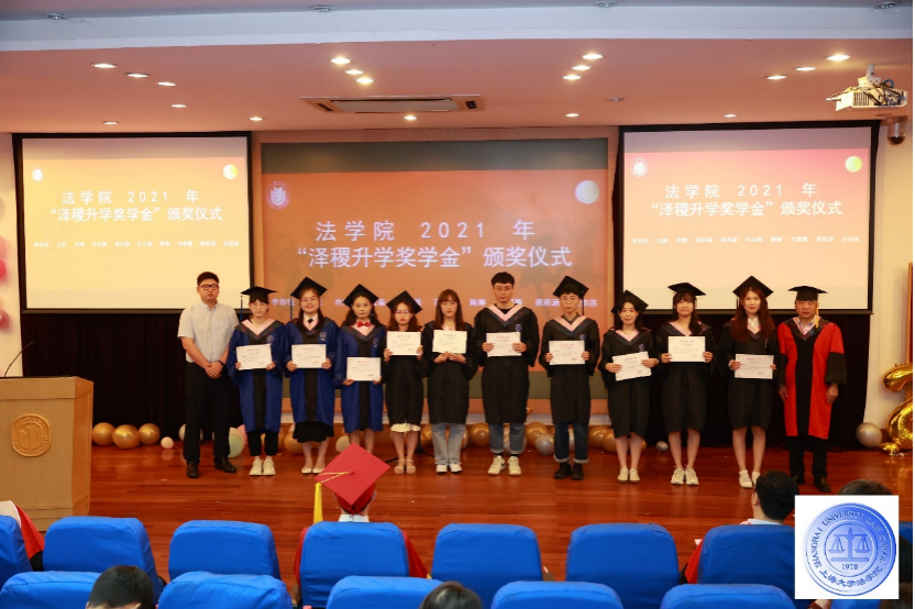 上海泽稷教育培训有限公司副总裁吴世浩,英国正版365首页院长文学国为英国正版365首页2021年“泽稷升学奖学金”(奖励英国正版365首页升入全国最近一轮法学学科评估结果为A-及以上的高校的应届毕业生)获得者李容佳、汪航、方璐馨、肖婷、宋天霖、孔心致、陈琳、龚思涵、沈佳燕、孙云森颁奖。