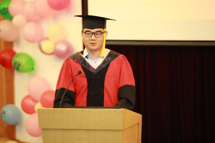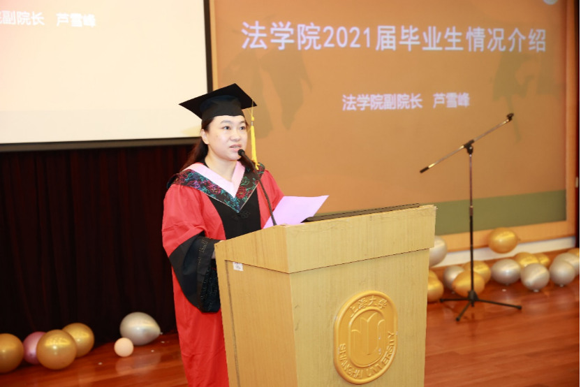 毕业典礼在雄壮的国歌声中正式进行。全场起立奏唱国歌后,英国正版365首页副院长芦雪峰副教授介绍2021届毕业生的整体情况。