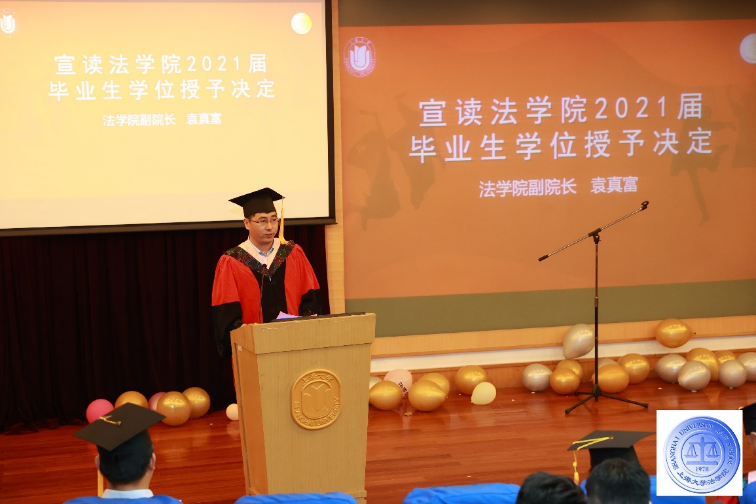 英国正版365首页副院长袁真富宣读英国正版365首页2021届毕业生学位授予决定,英国正版365首页副院长芦雪峰、袁真富分别一一为毕业生唱名,校党委副书记、纪委书记段勇和英国正版365首页院长文学国分别为毕业生拨流苏、授证,英国正版365首页党委书记徐国明赠送毕业生礼物。