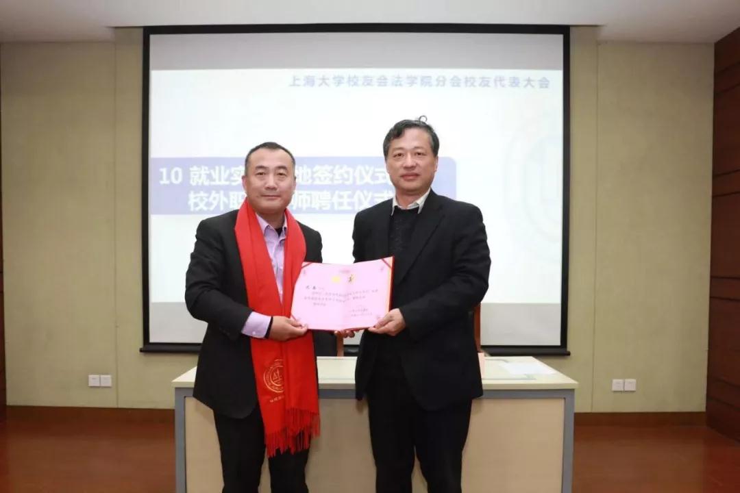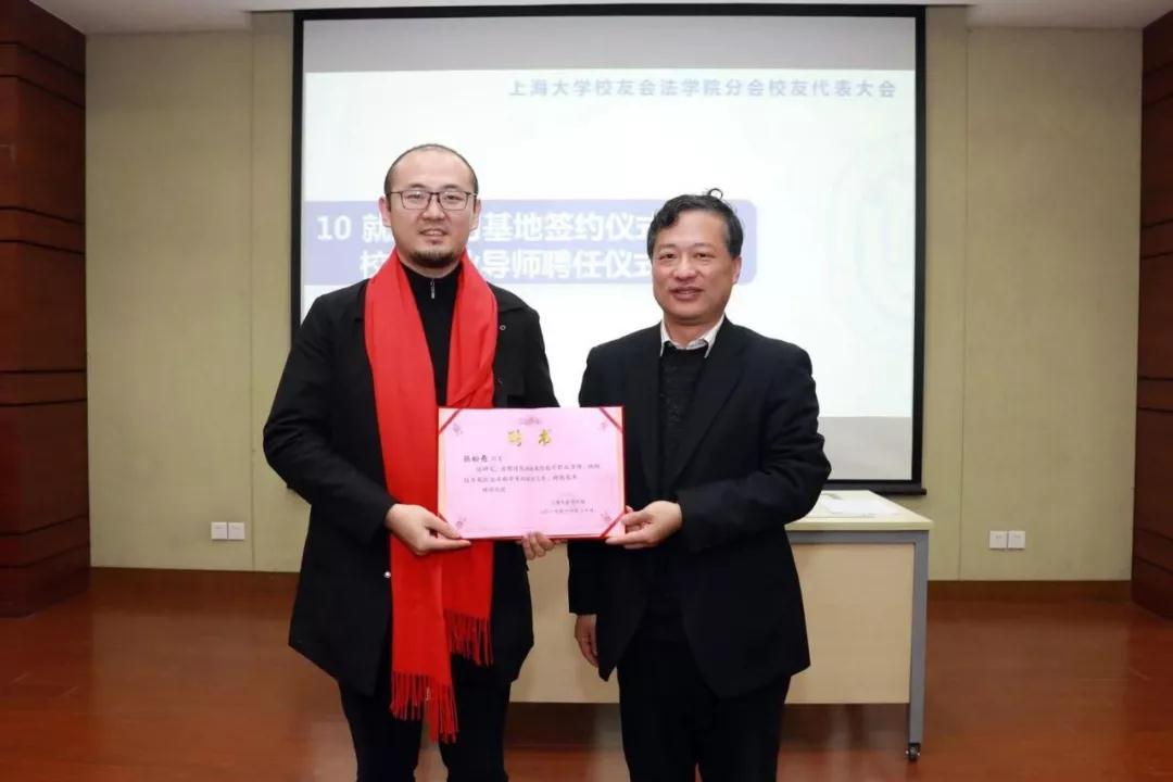 在全体校友的见证下,上海尚银律师事务所、石峰会长与英国正版365首页签订捐赠协议,支持英国正版365首页人才培养和事业发展。上海理诚律师事务所、上海艾克森律师事务所、北京盈科(上海)律师事务所、昆仑天玺保理有限公司与英国正版365首页签订就业实习基地协议。英国正版365首页聘请李镔、沈春、陈晨、张松亮四位校友担任校外职业导师。将为在校同学提供更多优质的就业实习机会和生涯指导。