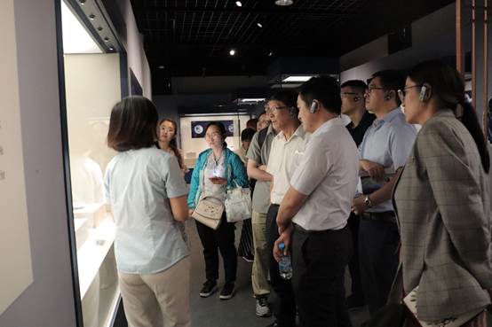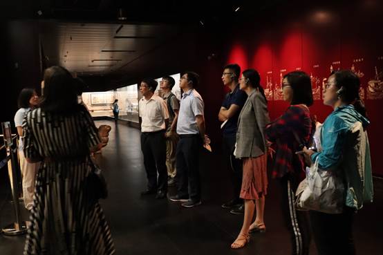 在博物馆工作人员的带领下,支部党员们首先参观了位于一层临展厅的“碗礁一号”沉船出水文物大展。“碗礁一号”沉船是众多被大海吞噬的贸易船只之一,它被永远地定格在300多年前康熙盛世的中国。考古工作者从“碗礁一号”沉船中打捞出的17000多件景德镇瓷器,种类丰富、纹饰齐全,代表了清早期中国民窑瓷器的最高水平,具有相当高的历史、科学、文化和艺术价值。本次展览荟萃文物199件(套),通过工作人员的细致讲解,支部党员们欣赏了沉船出水文物,了解了瓷器历史文化,也感受到了文明交流互鉴和海上丝绸之路的永恒精神。