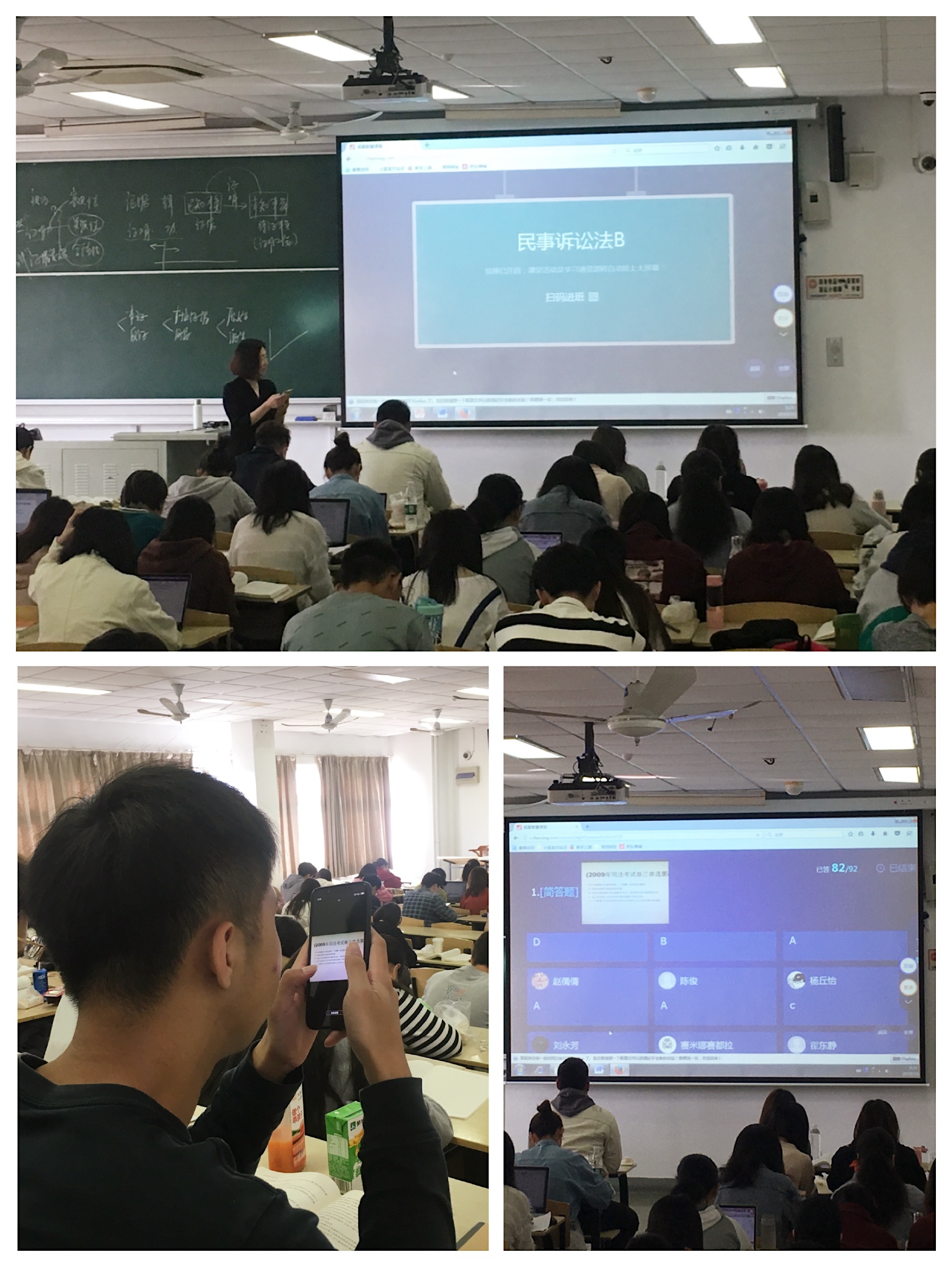 本次课程围绕“民事诉讼证据”的内容展开。史老师结合PPT课件,深入浅出的为同学们讲授了“证据资格”、“证明力”等概念的内容与相互关系。而对于“民事诉讼证据”中的几组关键概念,史老师则利用超星平台,用课堂小练习的方式与学生们互动。这一方面,加强了学生的课堂参与度,另一方面,也更深入的检查了学生们对知识点的掌握程度。这也正是“研究型挑战性”课程所倡导的理念。
