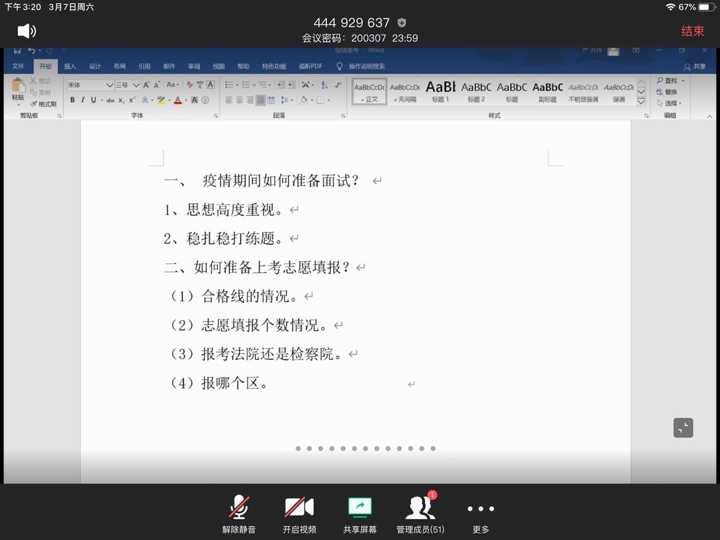 会议开始,侯老师先给同学们介绍了今年的就业形势以及我院现在公务员尤其是上海公务员的上线情况进行了汇报,接下来四位分享的同学从不同的方面进行了分析。郇鑫指出,复习备考要寻找志趣相投的“搭档”,这一点对于复习很有利,要多关注社会热点、时事政治,在面试过程准备中要避免出现“两极”现象;严方舟详细地为同学们对比了这两年上海各单位的招录情况,告诉同学们要“知己知彼”;许亚楠给同学们分享了几个在家复习比较好的小方法,并向同学们推荐多看人民日报、学习强国等一些主流媒体的文章等等;戴立则详细地为同学们分享了结构化面试与结构化小组在备考过程中的差异,还告诉大家在答题过程中要找准自己的节奏,表达自信,注意内在逻辑。