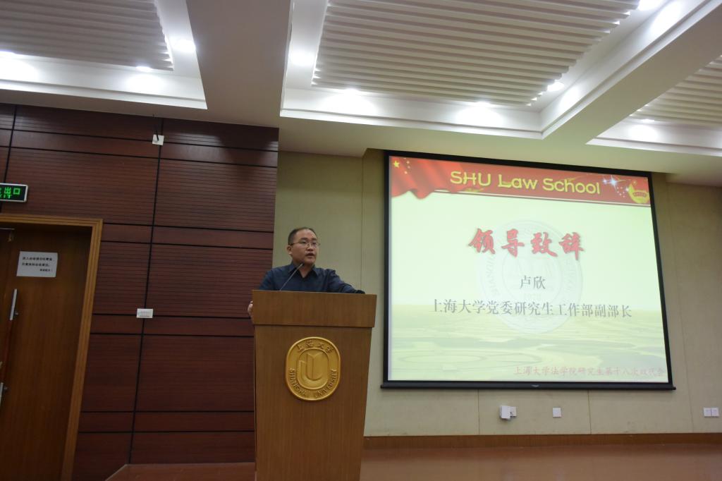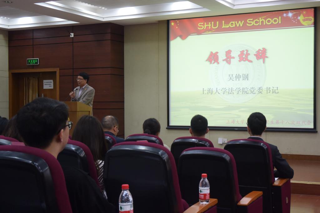 随后,由上海交通大学凯原英国正版365首页研究生会主席顾泽平同学、上海财经大学英国正版365首页研究生会主席章锡磊同学、上海政英国正版365首页研究生工作委员会主任张源同学、365(VIP)英国上市校研究生联合会副主席关皓文同学致辞。他们分别带来了兄弟院校和校级组织对英国正版365首页第十八次双代会召开的祝贺和对我院研究生工作的支持。