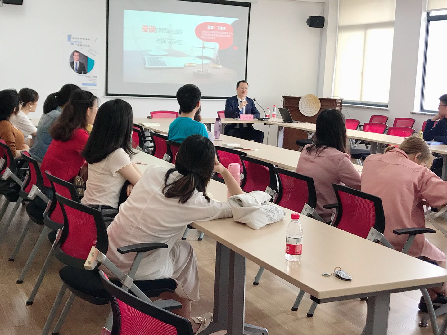 讲座中,丁俊涛律师以“律师职业的选择和定位”为主题亲切地与同学们分享律师执业方面的经验与故事。他用鲜活的案例和亲身经历生动诠释法律人的职业世界。丁律师妙趣的口才、明晰的思维、真诚的话语都给与会师生留下了深刻的印象。通过提炼日常法律执业经历中的心得感悟,他毫无保留地报经验分享给大家:一是做事先做人,无论从事什么行业,人品都是至关重要的,人品也影响到律师在行业中的形象和口碑。二是专业追求卓越、精益求精,从事律师行业就要不断追求、不断往上,要做就要做到顶尖、做出成绩。三是细节决定成败,细枝末节虽小却足以影响一件大事的结果,因此做事一定要注意细节。四是凡事多付出一点,做事时比别人多一点付出就会比别人多一点收获。