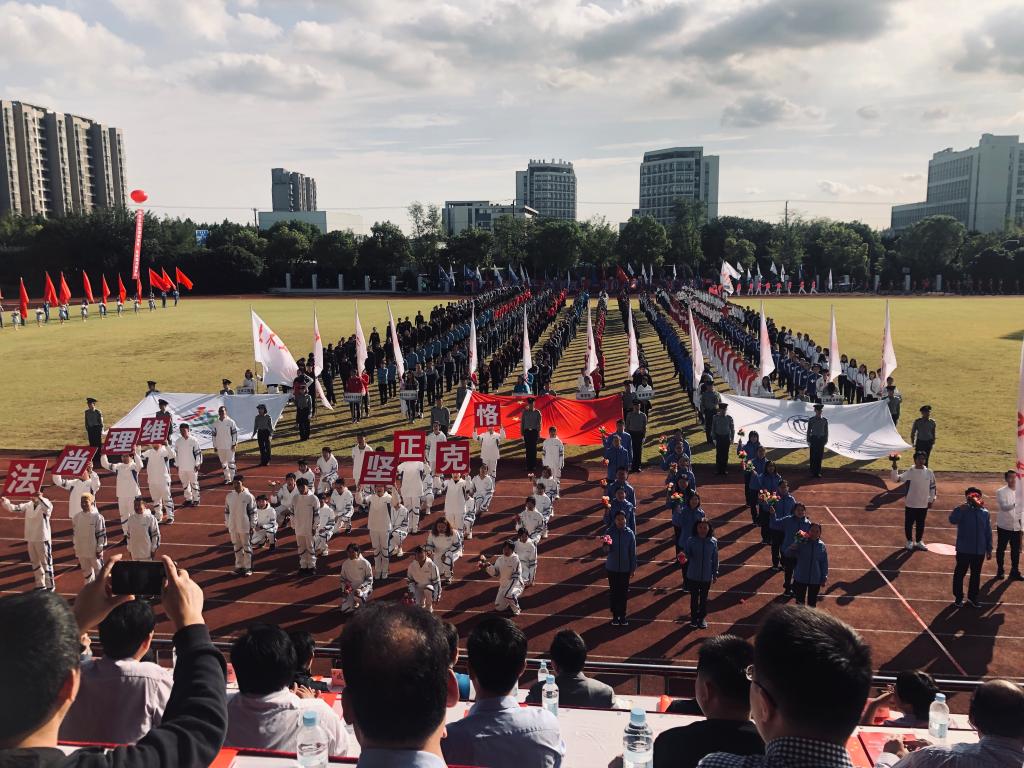 2019年10月18日,365(VIP)英国上市第二十二届运动会暨第十三届教职工运动会开幕式在校本部东田径场举行。英国正版365首页师生积极参加校运动会,并获佳绩。英国正版365首页老师获得广播操第三名,教工A组女子跳高第二名,教工C组女子抱球接力获小组第二;同学获得60米迎面接力团体第五、旋风跑团体第七、单腿跳团体第七、女生仰卧起坐第一、女生100米决赛第八的好成绩。