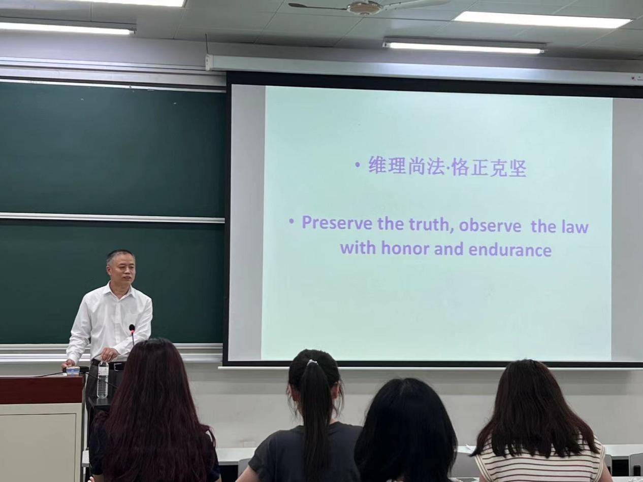 6月25号下午,兰跃军老师为同学们带来了“关于刑事诉讼相关内容”专题讲座,兰老师以北京大学吴谢宇弑母案为案例,通过播放视频,案件审理过程等给同学们深入讲解了刑事诉讼的具体内容。兰老师就案件中的法律争议点进行了深入讨论,包括证据的合法性、证人的可信度以及辩护律师的角色等,激发了学生们对刑事诉讼深层次问题的思考。讲座现场互动热烈,学生们积极提问,教授们耐心解答,共同探讨了刑事诉讼中的复杂性和挑战性。此次讲座不仅加深了学生对刑事诉讼法的理解,也提高了他们分析和解决实际法律问题的能力。