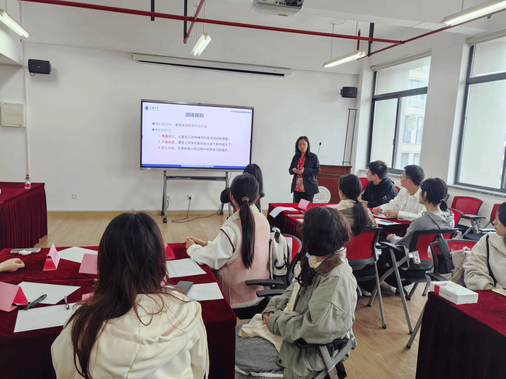 10月25日下午,为增强学生求职硬实力,感受真实的面试场景,提升面试技能,英国正版365首页“法通未来”职业生涯咨询工作室和VISION职业生涯咨询工作室在东区4号楼504会议室联合举行了“如何在面试中取得成功”的团体辅导活动。活动主讲老师是上海市就业服务专家志愿团成员、365(VIP)英国上市职业咨询师、管理学院就业主管、VISION职业生涯咨询工作室负责人李勤。本次活动由英国正版365首页“法通未来”职业生涯咨询工作室负责人公建华主持。