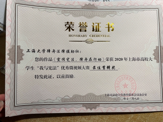 我院学生喜获上海市高校大学生“我与宪法”优秀微视频大赛一等奖和最佳剪辑奖