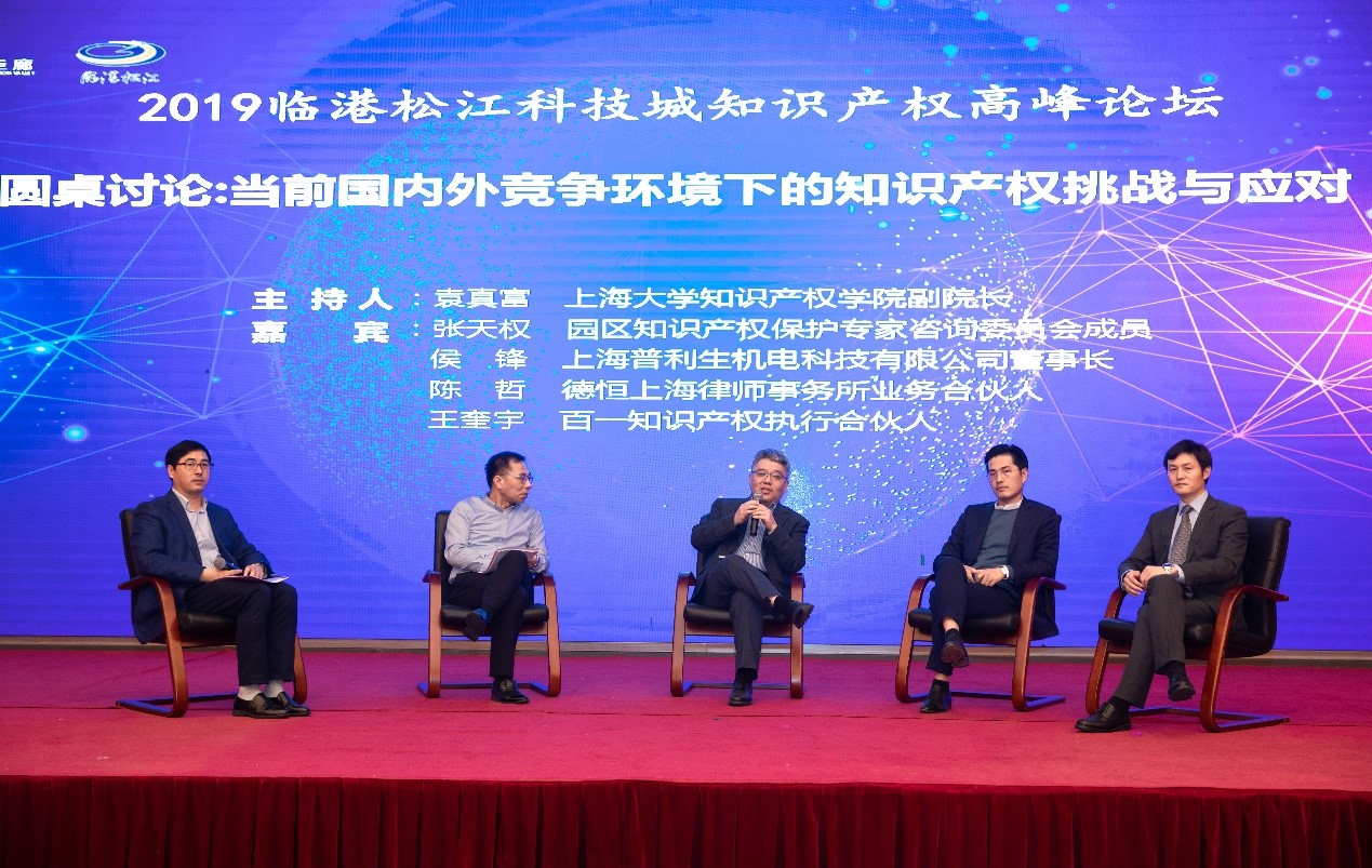 主题演讲环节结束后,在365(VIP)英国上市知识产权学院副院长袁真富博士的主持下,圆桌讨论紧扣“当前国内外竞争环境下的知识产权挑战与应对”这一主旨,各位参与嘉宾和听众产生了激烈的思维碰撞,迸射出灿烂的智慧火花。主要参与嘉宾有园区知识产权保护专家咨询委员会成员张天权、上海普利生机电科技有限公司董事长侯锋、百一知识产权执行合伙人王奎宇和德恒上海律师事务所业务合伙人陈哲。