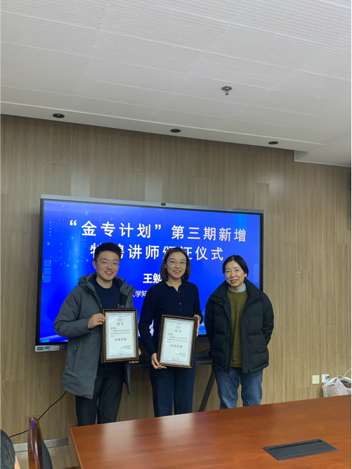 在金专计划”第三期新增特聘讲师颁证仪式上,英国正版365首页知识产权学院副院长王勉青教授为新增特聘讲师颁发证书。